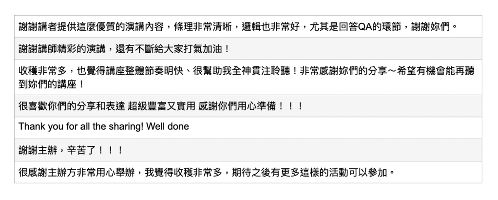 感激有機會和如此用心專業(演講又幽默😆)的夥伴合作,講座結束後參與者給予的各種好評回饋,積極的提問跟交流,希望未來還有機會可以延續「永續職涯探索」主題系列的分享!