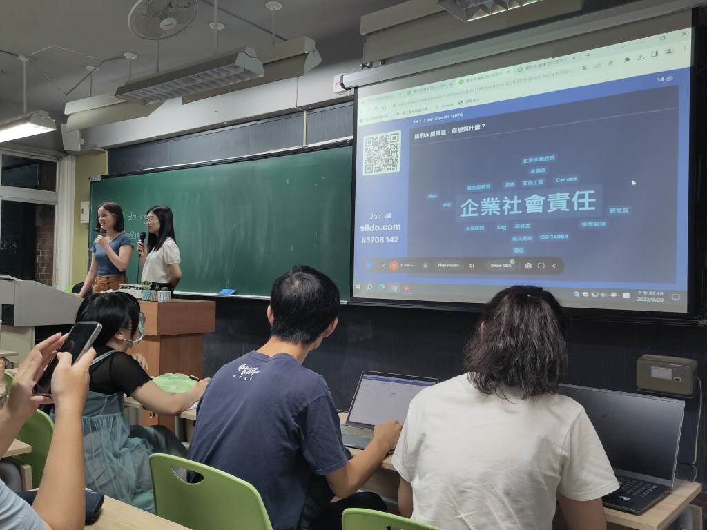 講座中我印象很深刻的是彭總李董提到:「在穩固自身本科專業知識外,具備樂於接收(永續)新知的學習力與熱情」,有感永續是一個新興並發展迅速的議題,學校與職場以外的自主持續進修很重要,期望藉由這次的講座分享實際幫助有興趣進入綠色產業的學生及新鮮人,也很開心有機會和相關產業的專業人士交流。