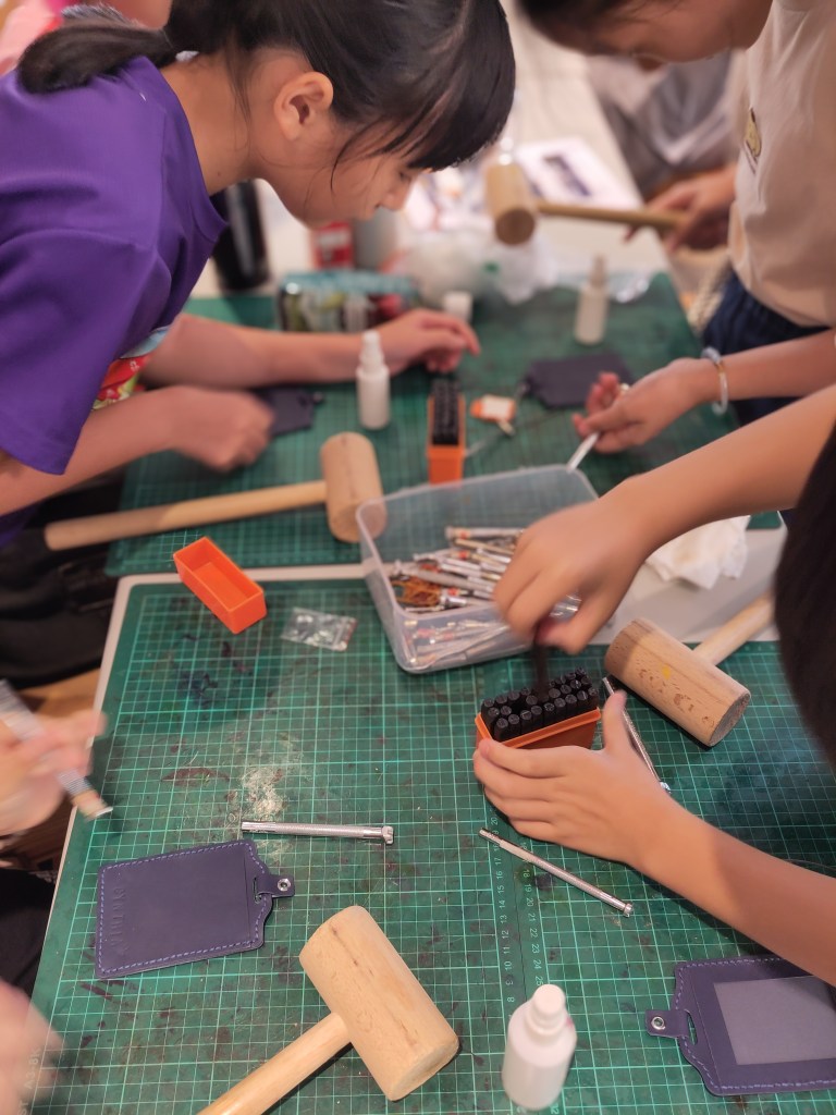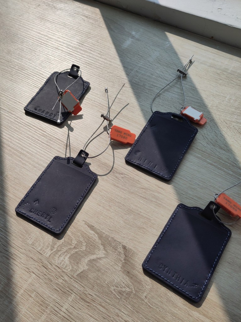 因應質感的需求,船廢再生零件結合的證件套選用皮革,很開心最後找到很棒的廠商,我也習得手縫皮革的技術(不能說是很完美畢竟術業有專攻哈哈),工作坊參與的國小學生最後都能完成帶回家使用,真的很棒!