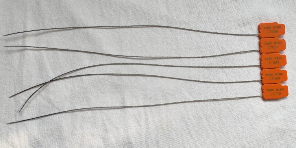 它們的名稱是「鉛封」,為貨物裝進貨櫃以後的海關鎖,每個鉛封上都有唯一的編號,而這些舊式鉛封上鎖後(如不可退束帶),除非暴力破壞(即剪開)則無法再次使用,新式鉛封改為可重複利用,需要特殊海關開鎖工具才可打開。