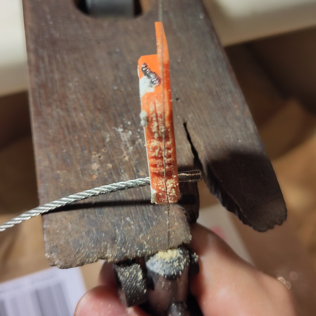 鋼繩剪開一不小心就會整個散開不能使用,買了銳利的鋼繩專用剪並找到方法,解決了散開的問題。