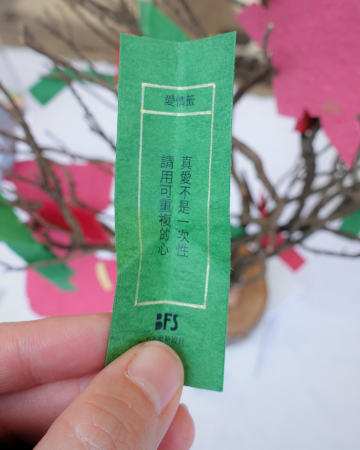此次同時設計了與展區「海廢再生所」聯動的 「山海籤」互動體驗,作為串連市集與展覽之間的入口。