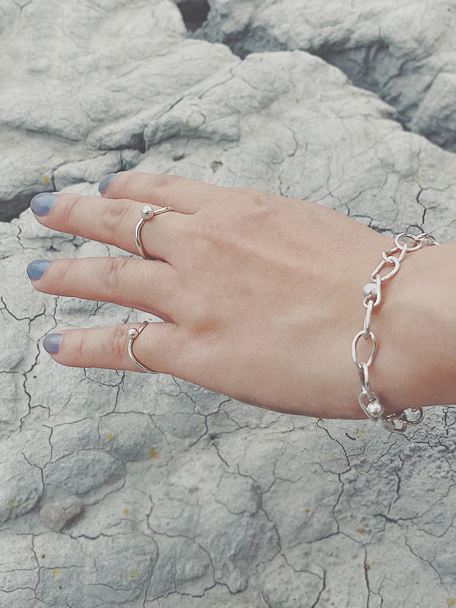 以回收銀打造的刻印飾品,保留手作痕跡,低調耐看。